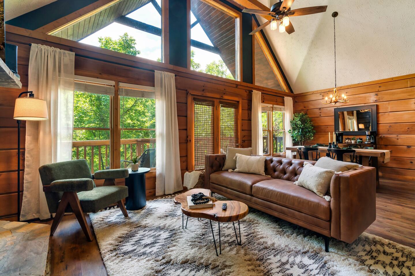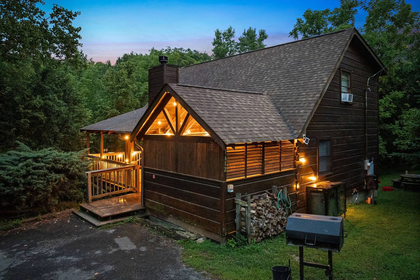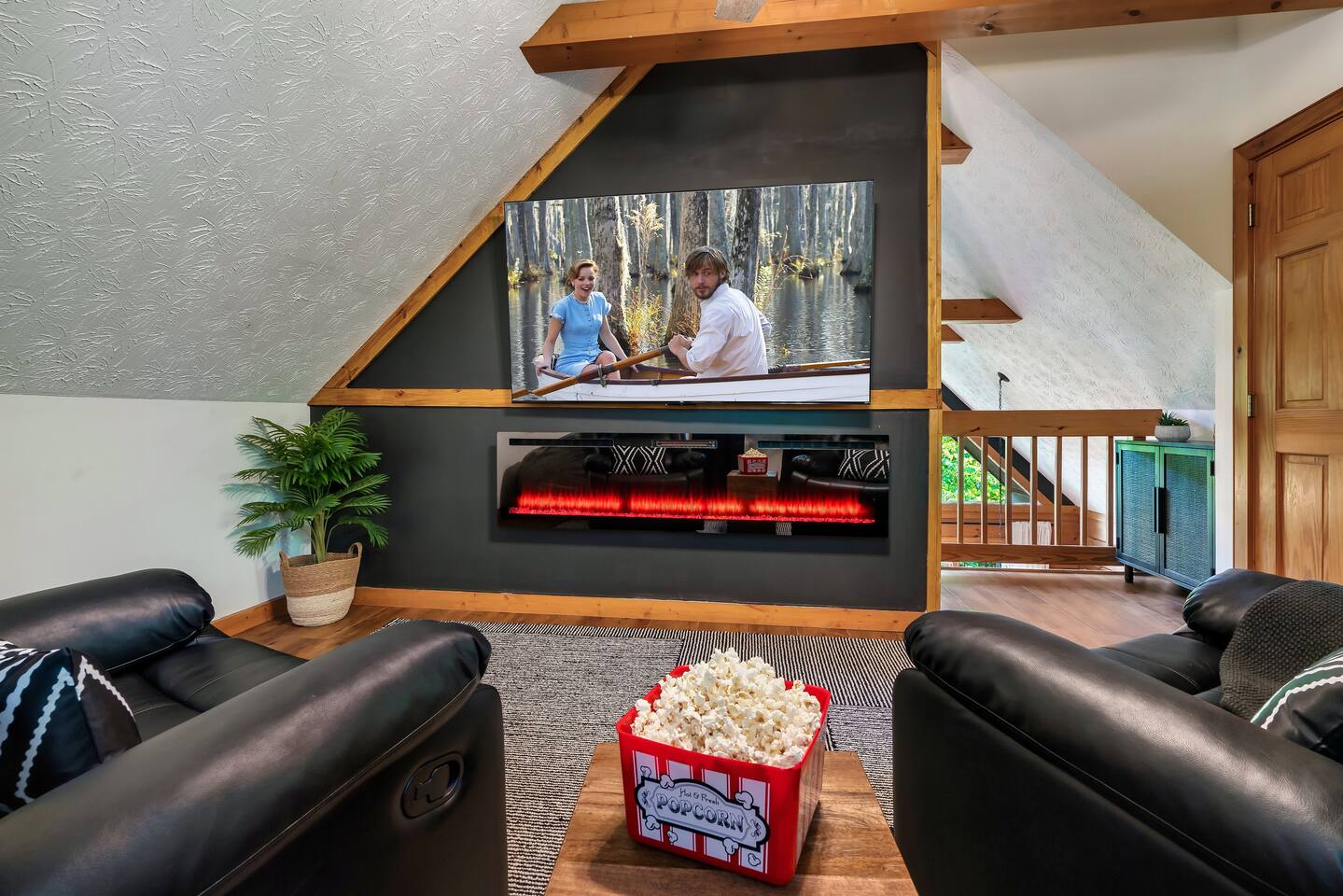 * Secluded, cozy space for couples * Dogs are welcome! * Luxury cabin for getting away from it all, but still only 5 minutes from the Parkway in Pigeon Forge. * Amazing theater room with popcorn machine, popcorn provided * 3 smart tvs to stream all your shows * Hammock, hot tub, outdoor grill, solo stove * Wood burning fireplace in the living room, and electric fireplace in theater room for cozy ambiance. * Resort has seasonal outdoor pool and a peaceful nature trail for hiking