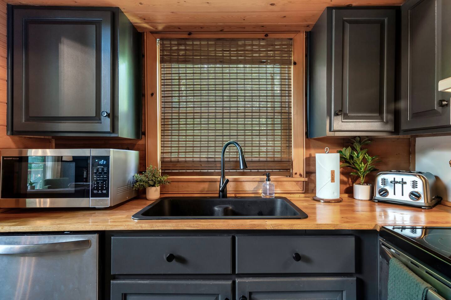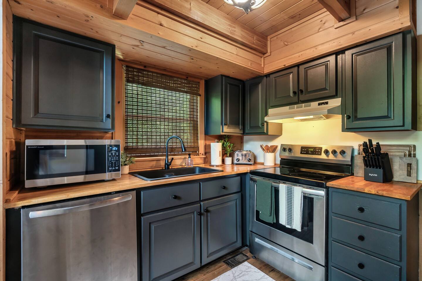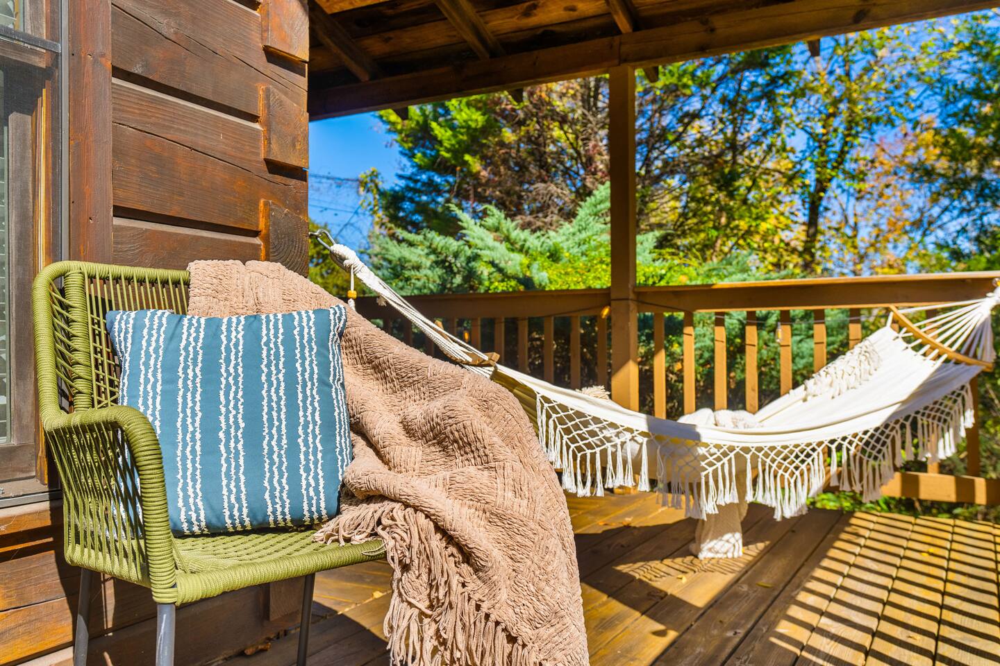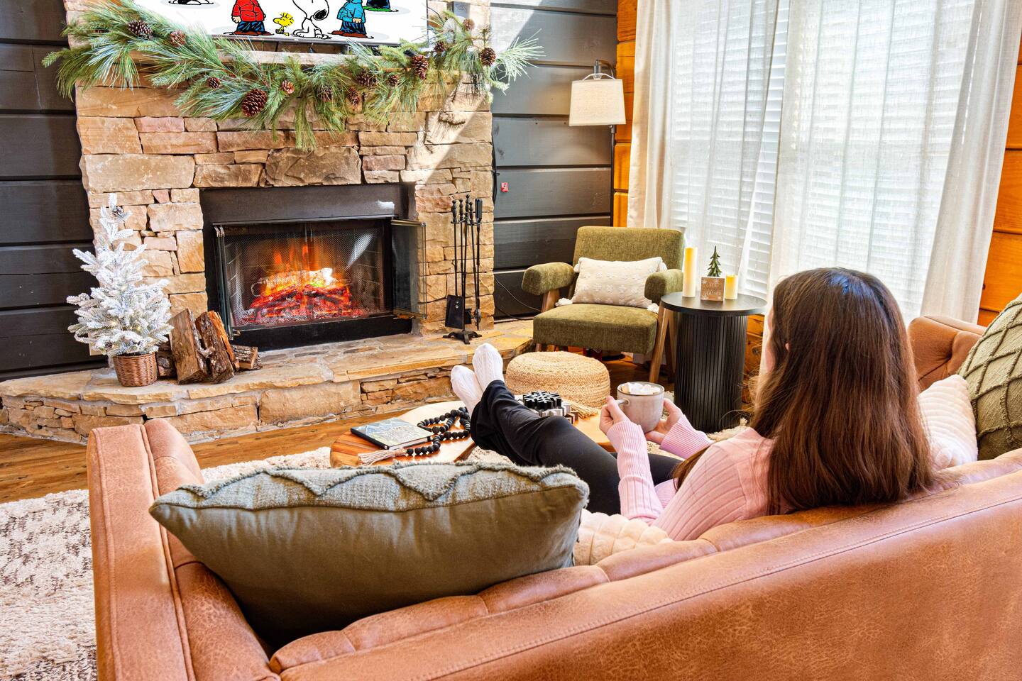 * Secluded, cozy space for couples * Dogs are welcome! * Luxury cabin for getting away from it all, but still only 5 minutes from the Parkway in Pigeon Forge. * Amazing theater room with popcorn machine, popcorn provided * 3 smart tvs to stream all your shows * Hammock, hot tub, outdoor grill, solo stove * Wood burning fireplace in the living room, and electric fireplace in theater room for cozy ambiance. * Resort has seasonal outdoor pool and a peaceful nature trail for hiking
