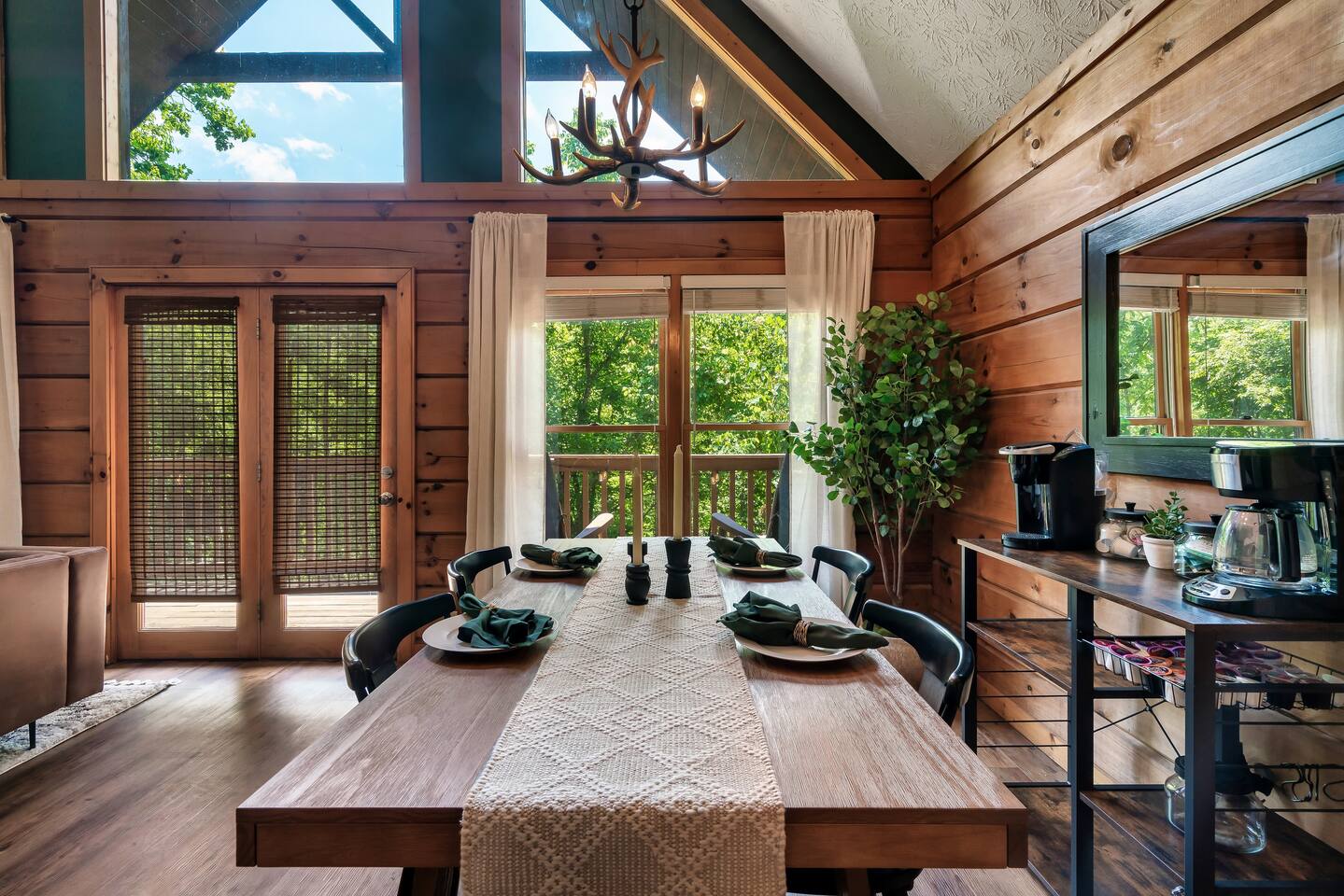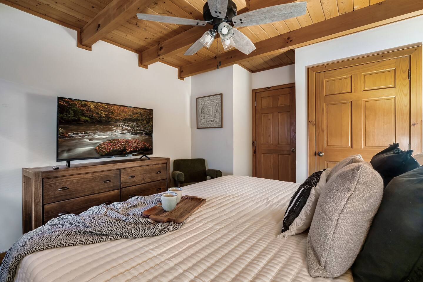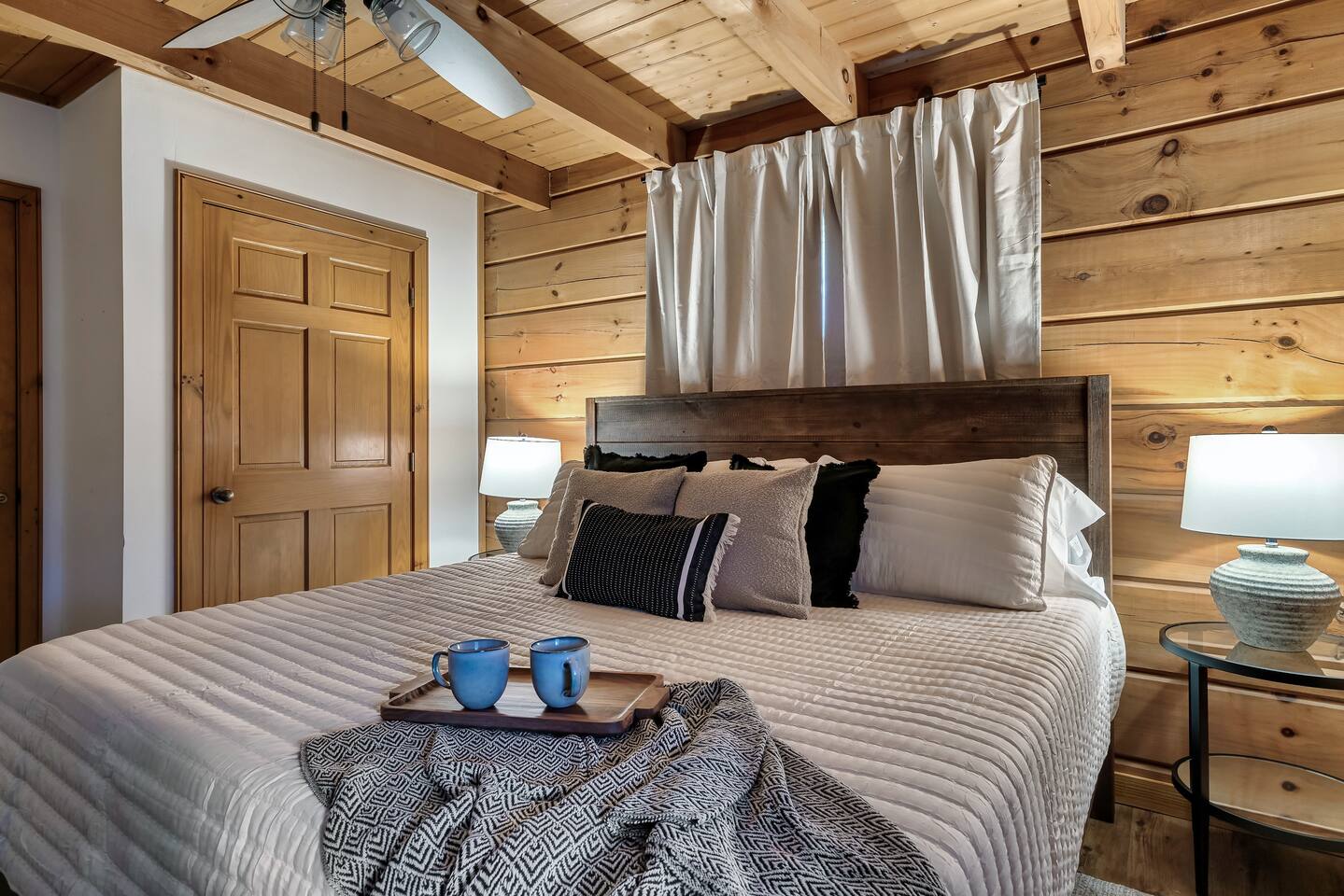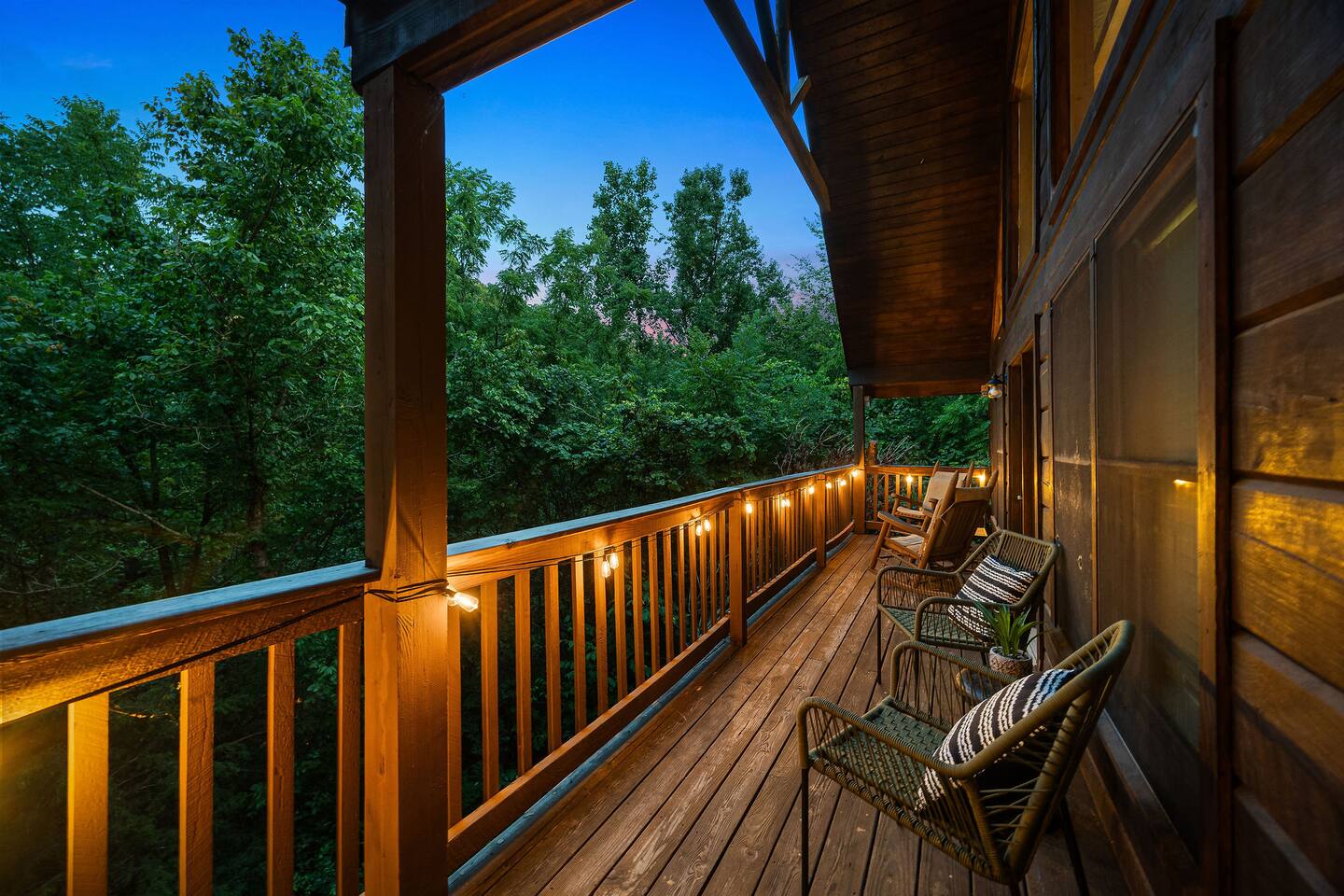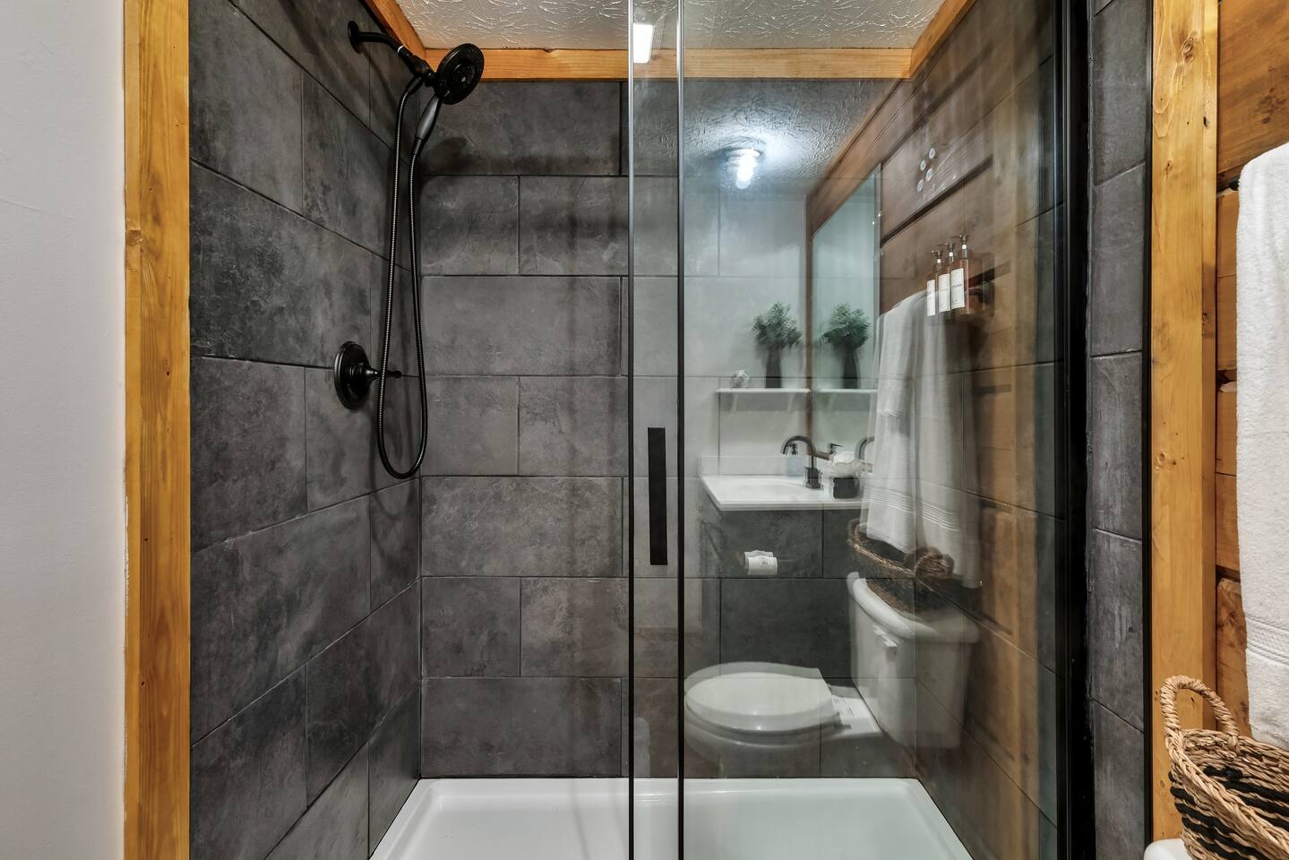 Welcome Couples!!! ✅ secluded cabin but close to everything, no steep roads ✅ HUGE private, romantic hot tub area with lux robes ✅ cozy wood burning Fireplace ✅ theater room with 75” smart TV, electric fireplace, games, and popcorn machine ✅ lux king size bed ✅ hammock for kicking back on the deck ✅ fully equipped for dog parents to bring their babies ✅ door dash & instacart deliver to cabin ✅ coffee/ hot chocolate/ tea bar with all fixins ✅ resort has hiking trail & outdoor seasonal pool available for you use ✅ romance packages available for additional fee and 24 hour notice. We are able to sleep a maximum of 4 guests. There is a private bedroom with a king bed. The second sleeping area is the upstairs loft. It has a CordaRoy brand beanbag chair that folds out into a queen size sleeping mattress. It should be noted that this mattress is on the floor, so would be best suited to those with no physical limitations. Our cabin is private but close to everything. There are no steep roads to get to the cabin. Parking enough for 2 cars. The cozy, modern living room invites you to snuggle up on the leather couch in front of the crackling fire and watch a movie. In case you decide to stay in for the night and cook, we have a well appointed kitchen with everything you would need. There are 2 newly updated full bathrooms that provide plenty of towels, soap, shampoo, and conditioner you need during your stay. "The stay was absolutely amazing and private! Stacey was well with emails and communication! The place was clean and had everything we needed for our stay! Will be booking from her again! Thanks for the nice Tennessee hospitality." The lux master bedroom has a king bed with comfy linens. We always have plenty of extra pillows and blankets should you need them. From the master bedroom you can head directly out to the romantic hot tub area. We have twinkle lights and battery powered candles to provide atmosphere. "We had a wonderful stay here! The cabin was beautiful and the amenities were all top notch. We loved that the cabin itself was in a peaceful setting in the woods but we were only a very short drive to restaurants and attractions. The neighborhood pool was a lovely little bonus. Highly recommend and would definitely return!" The deck has a beautiful valley view that can be observed while kicking back in the deck chairs or the hammock. There’s a park style grill close to the entrance of the cabin. You bring the charcoal. "Stacey was amazing and the cabin was even better! There’s a yard in the back with greenery all around, perfect for letting the dogs chase a ball around. Very private and comfortable and only minutes from everything in Pigeon Forge. The bed is so comfortable and the pillows were perfect. I woke up rested and ready for activities. Stacey provided a dog kennel under the stairs big enough for both Boston terriers to fit comfortably. The deck out back is incredible in the morning sunlight and the jacuzzi was crystal clear. 10/10 would absolutely be back if available for our next trip!"