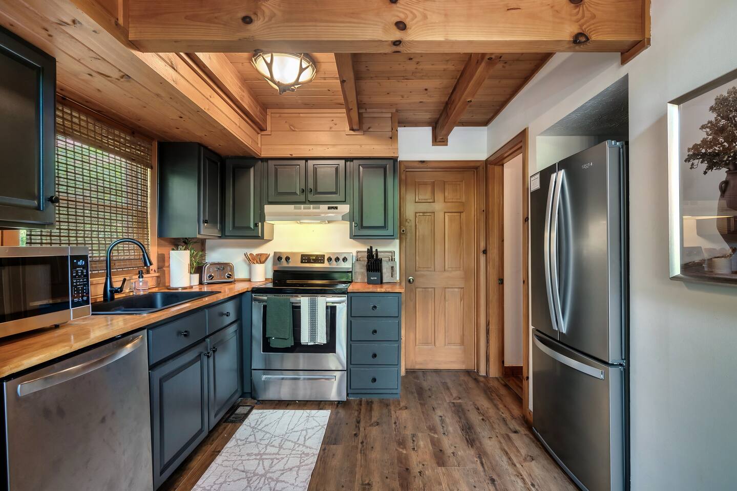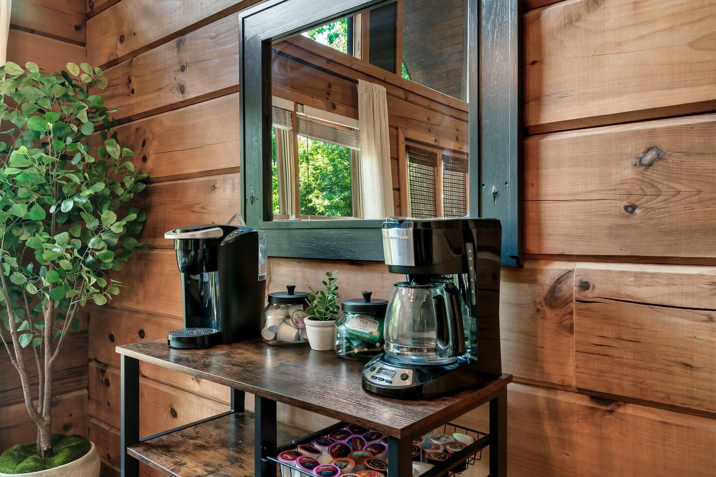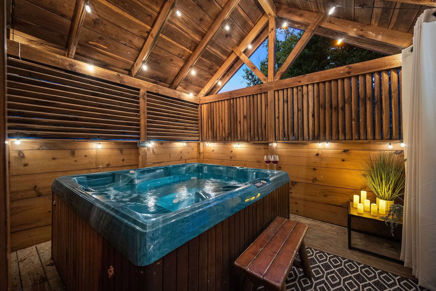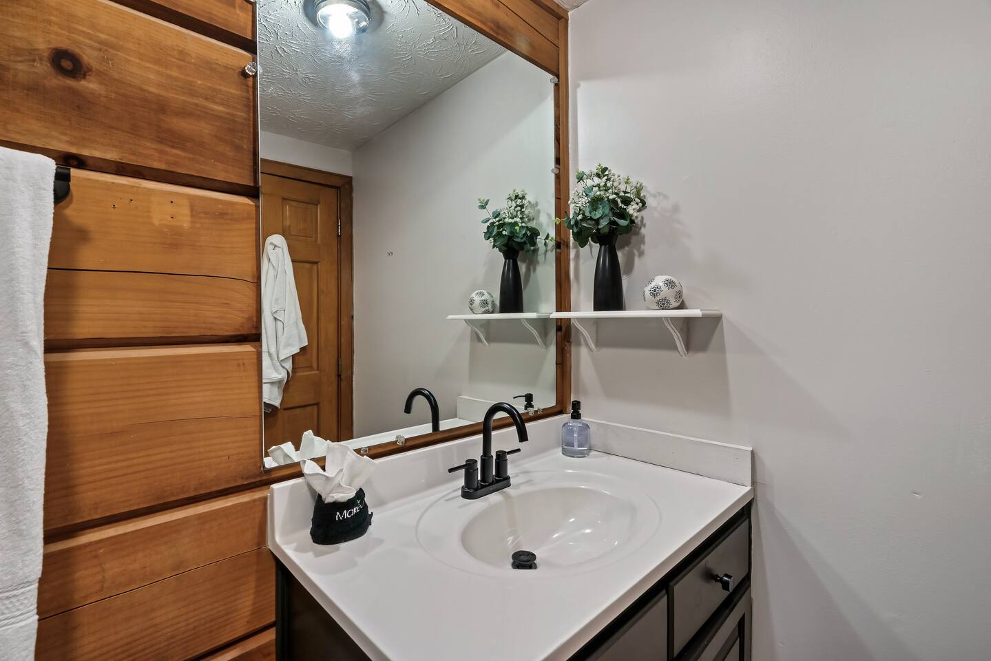 Welcome Couples!!! ✅ secluded cabin but close to everything, no steep roads ✅ HUGE private, romantic hot tub area with lux robes ✅ cozy wood burning Fireplace ✅ theater room with 75” smart TV, electric fireplace, games, and popcorn machine ✅ lux king size bed ✅ hammock for kicking back on the deck ✅ fully equipped for dog parents to bring their babies ✅ door dash & instacart deliver to cabin ✅ coffee/ hot chocolate/ tea bar with all fixins ✅ resort has hiking trail & outdoor seasonal pool available for you use ✅ romance packages available for additional fee and 24 hour notice. We are able to sleep a maximum of 4 guests. There is a private bedroom with a king bed. The second sleeping area is the upstairs loft. It has a CordaRoy brand beanbag chair that folds out into a queen size sleeping mattress. It should be noted that this mattress is on the floor, so would be best suited to those with no physical limitations. Our cabin is private but close to everything. There are no steep roads to get to the cabin. Parking enough for 2 cars. The cozy, modern living room invites you to snuggle up on the leather couch in front of the crackling fire and watch a movie. In case you decide to stay in for the night and cook, we have a well appointed kitchen with everything you would need. There are 2 newly updated full bathrooms that provide plenty of towels, soap, shampoo, and conditioner you need during your stay. "The stay was absolutely amazing and private! Stacey was well with emails and communication! The place was clean and had everything we needed for our stay! Will be booking from her again! Thanks for the nice Tennessee hospitality." The lux master bedroom has a king bed with comfy linens. We always have plenty of extra pillows and blankets should you need them. From the master bedroom you can head directly out to the romantic hot tub area. We have twinkle lights and battery powered candles to provide atmosphere. "We had a wonderful stay here! The cabin was beautiful and the amenities were all top notch. We loved that the cabin itself was in a peaceful setting in the woods but we were only a very short drive to restaurants and attractions. The neighborhood pool was a lovely little bonus. Highly recommend and would definitely return!" The deck has a beautiful valley view that can be observed while kicking back in the deck chairs or the hammock. There’s a park style grill close to the entrance of the cabin. You bring the charcoal. "Stacey was amazing and the cabin was even better! There’s a yard in the back with greenery all around, perfect for letting the dogs chase a ball around. Very private and comfortable and only minutes from everything in Pigeon Forge. The bed is so comfortable and the pillows were perfect. I woke up rested and ready for activities. Stacey provided a dog kennel under the stairs big enough for both Boston terriers to fit comfortably. The deck out back is incredible in the morning sunlight and the jacuzzi was crystal clear. 10/10 would absolutely be back if available for our next trip!"